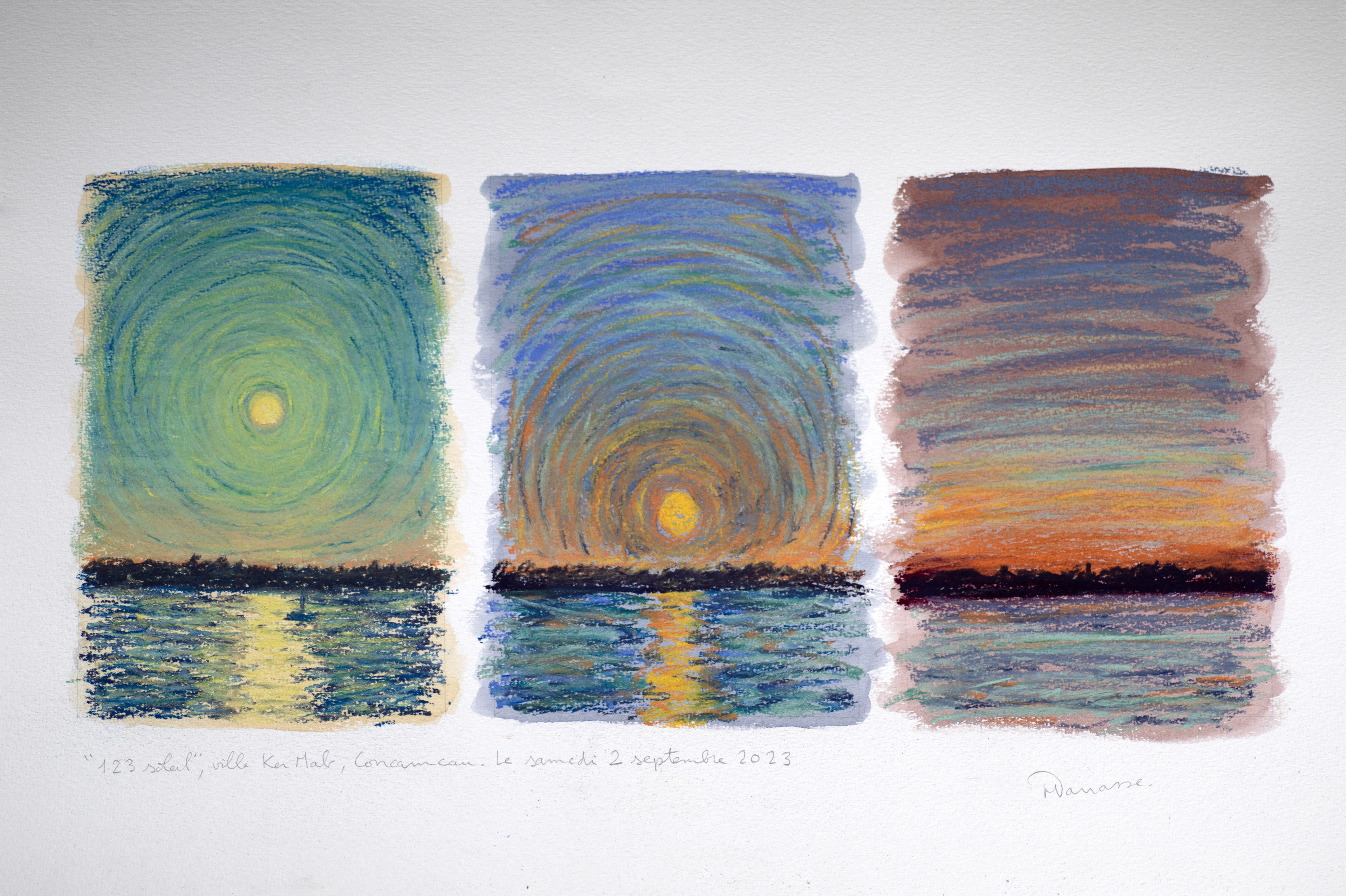 Vous pouvez voir aussi mon dernier projet artistique sur Instagram @123coucherdesoleil utilisant la technique du pastel.